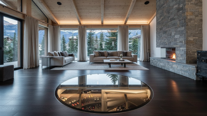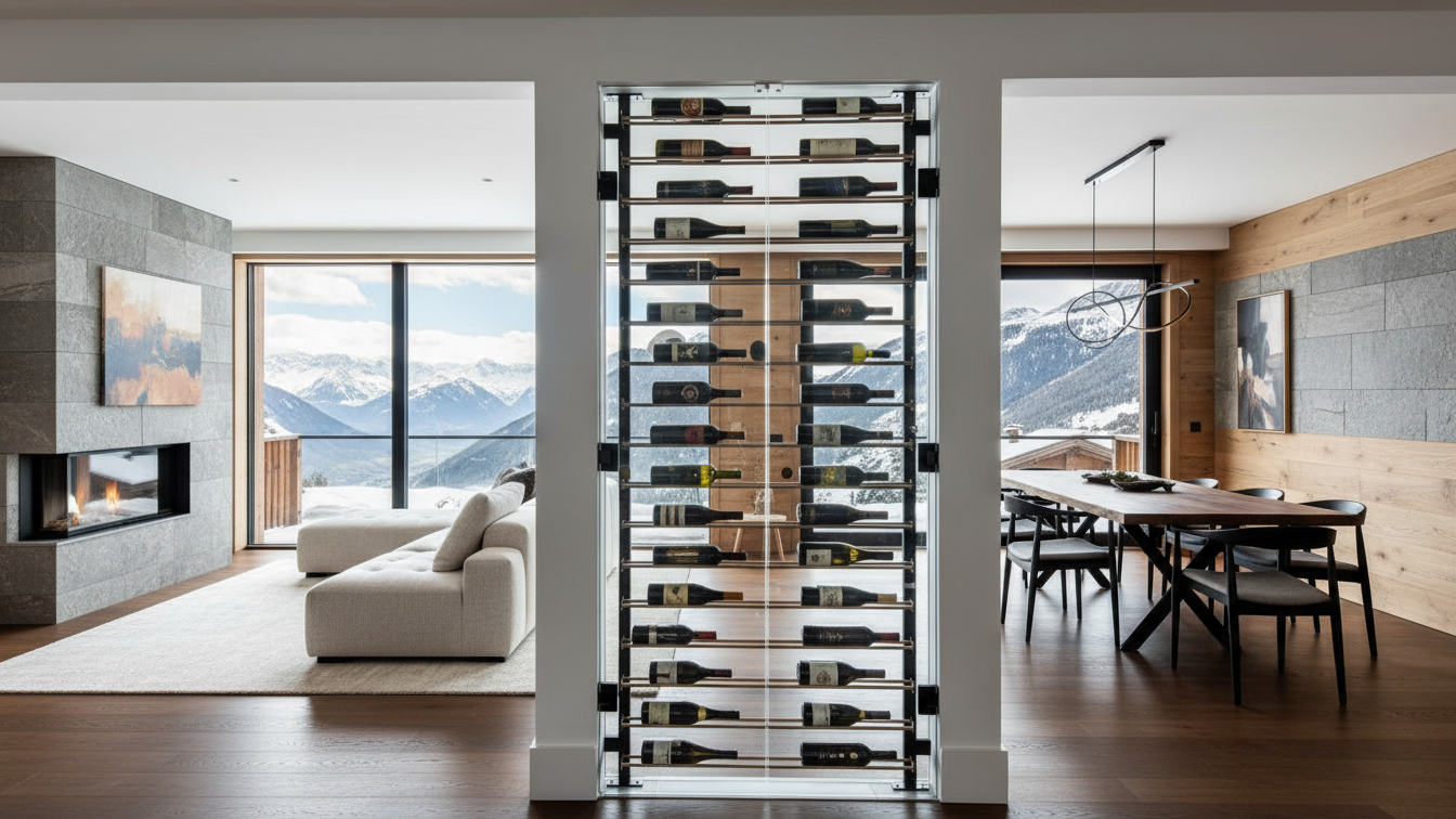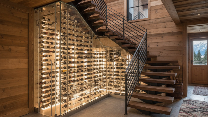 We design and build custom wine cellars that match your interior and protect your collection with stable, cellar-grade conditions. From modern glass showcases to chalet-style wood and black metal, every project is planned for long-term wine preservation and elegant presentation.